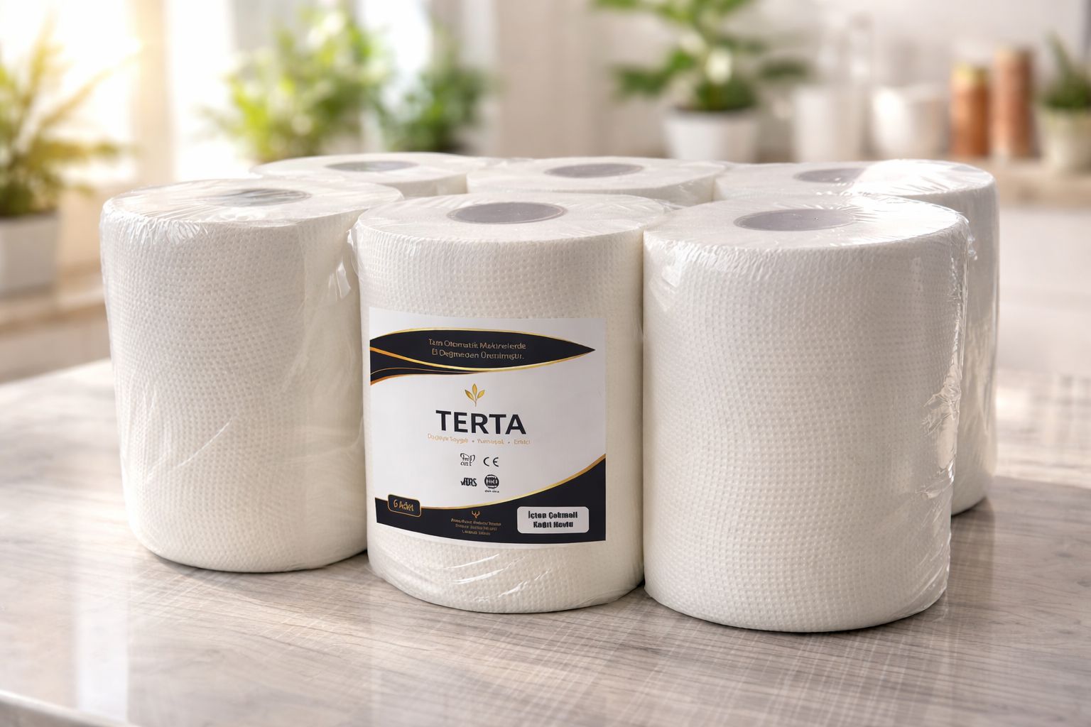 - İçten çekmeli kağıt havlu: Kolay kopan, yüksek emiciliğe sahip, hijyenik kullanım sağlayan rulolar.